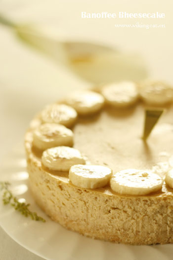 7. 香蕉切片,拌以白朗姆酒和糖后铺在芝士蛋糕面上.