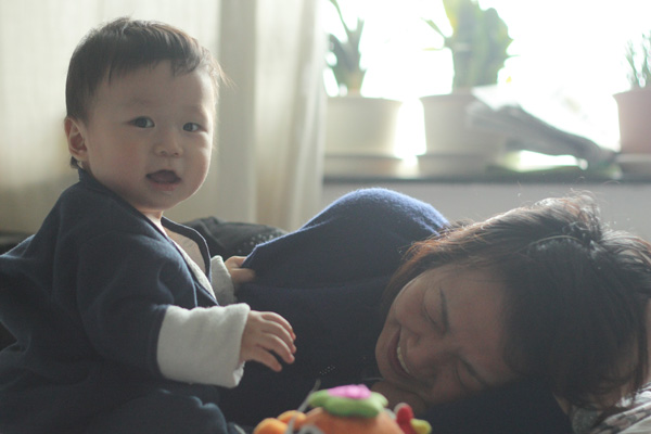 大人们都好有成就感.特别是外婆,会笑的好开心.