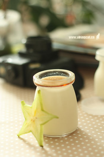 材料:淡奶油70G ,吉利丁片5G.牛奶250G.炼乳25G.砂糖27G.香草豆夹籽1/2个