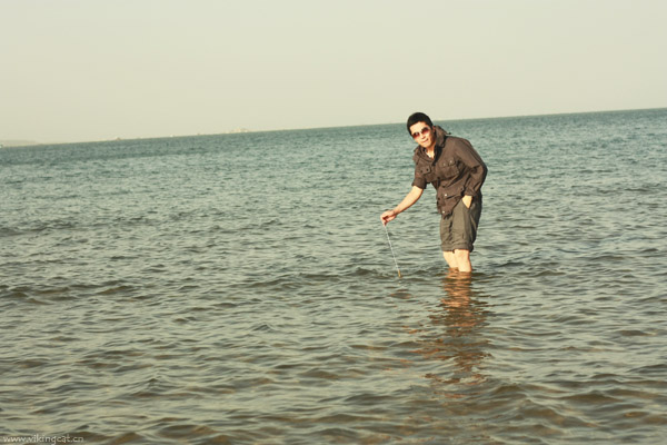 - 哪有裤子都不卷就下海的,还那么清楚的倒影。